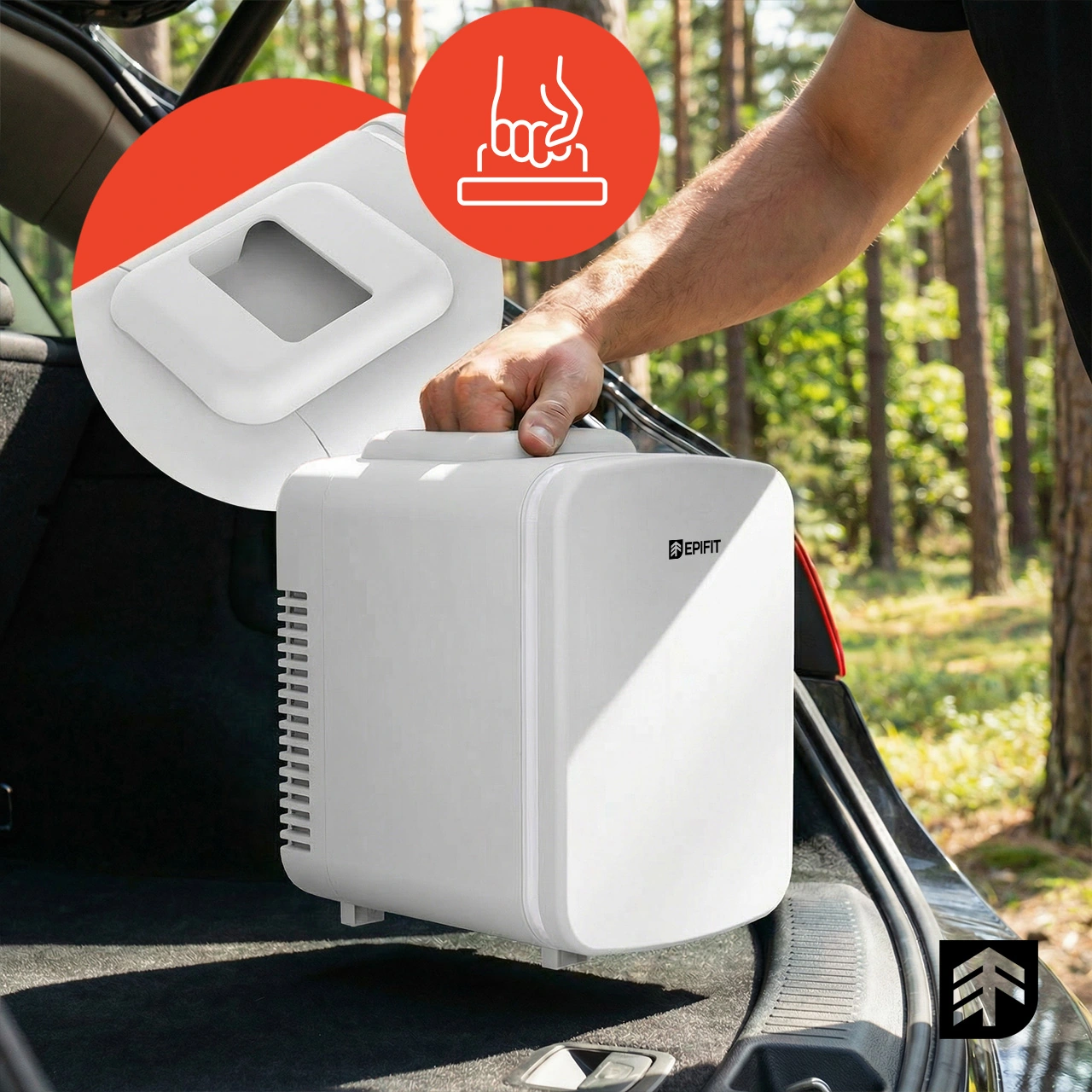 Další výhodou je praktická a pohodlná rukojeť , která usnadňuje rychlé přemístění ledničky z domova do auta, z auta na piknik nebo do hotelového pokoje.
