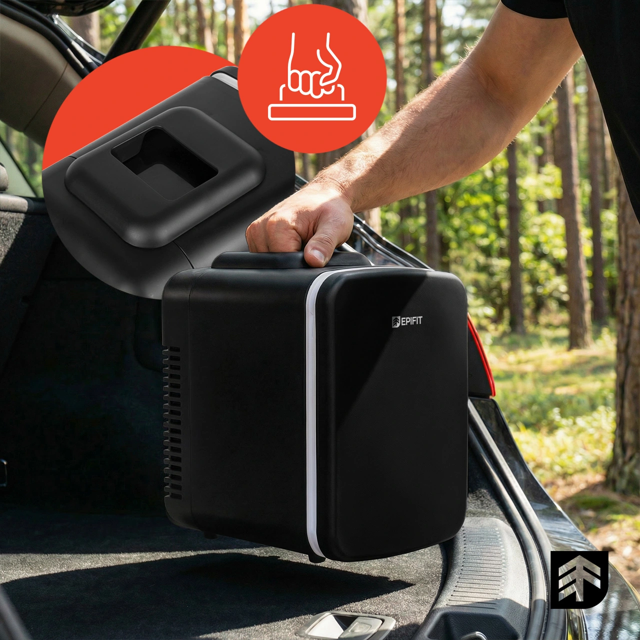 Další výhodou je praktická a pohodlná rukojeť , která usnadňuje rychlé přemístění ledničky z domova do auta, z auta na piknik nebo do hotelového pokoje.