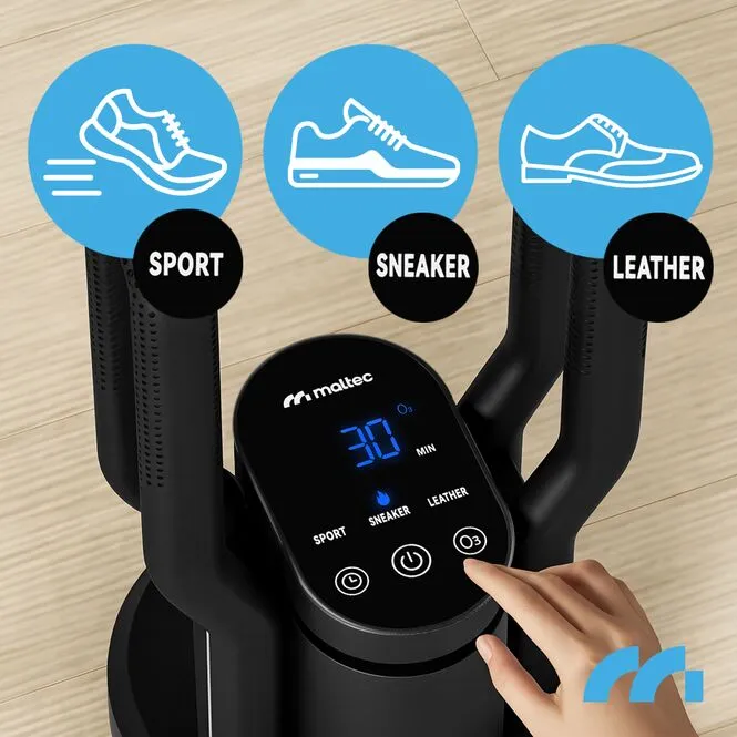 Ozon je silný dezinfekční prostředek používaný mimo jiné v lékařství, potravinářském průmyslu a úpravě vody. Sušička MalTec generuje omezené množství ozonu v přijatelných mezích a plyn se během několika minut rozkládá zpět na kyslík . Tím se neutralizují nepříjemné pachy a omezuje růst bakterií . Po dokončení cyklu se ozon nezadržuje v botách ani v místnosti . Režim O3 pracuje 5 minut a poté se automaticky vypne. Lze jej zapnout nebo vypnout nezávisle na sušicím cyklu.
