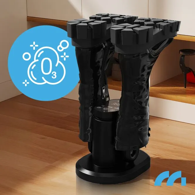 Vložte špičky sušičky bot, zapojte je do zásuvky 220–240 V, podržte tlačítko napájení po dobu 3 sekund a poté vyberte provozní režim a čas. Po skončení odpočítávání se zařízení automaticky vypne. V režimu O₃ pracuje ozonátor 5 minut a poté se sám vypne.