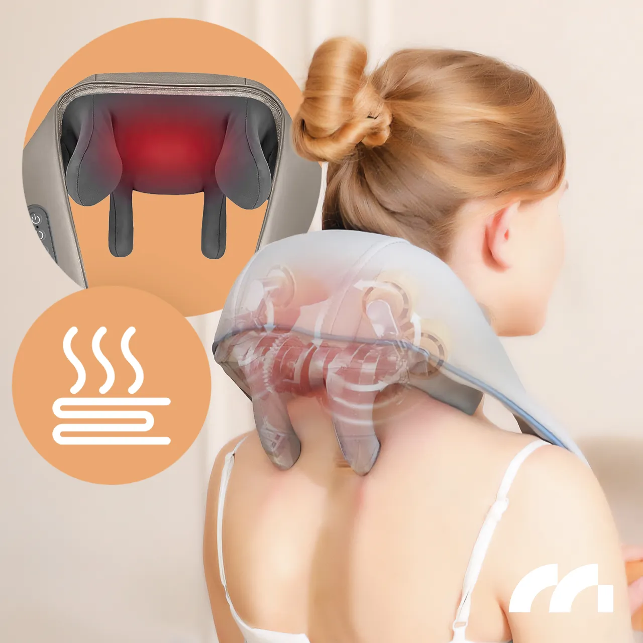 BEZDRÁTOVÝ SHIATSU MASÁŽNÍ PŘÍSTROJ NA KRK A RAMENA S VYHŘÍVACÍM MASÁŽNÍM PÁSEM
