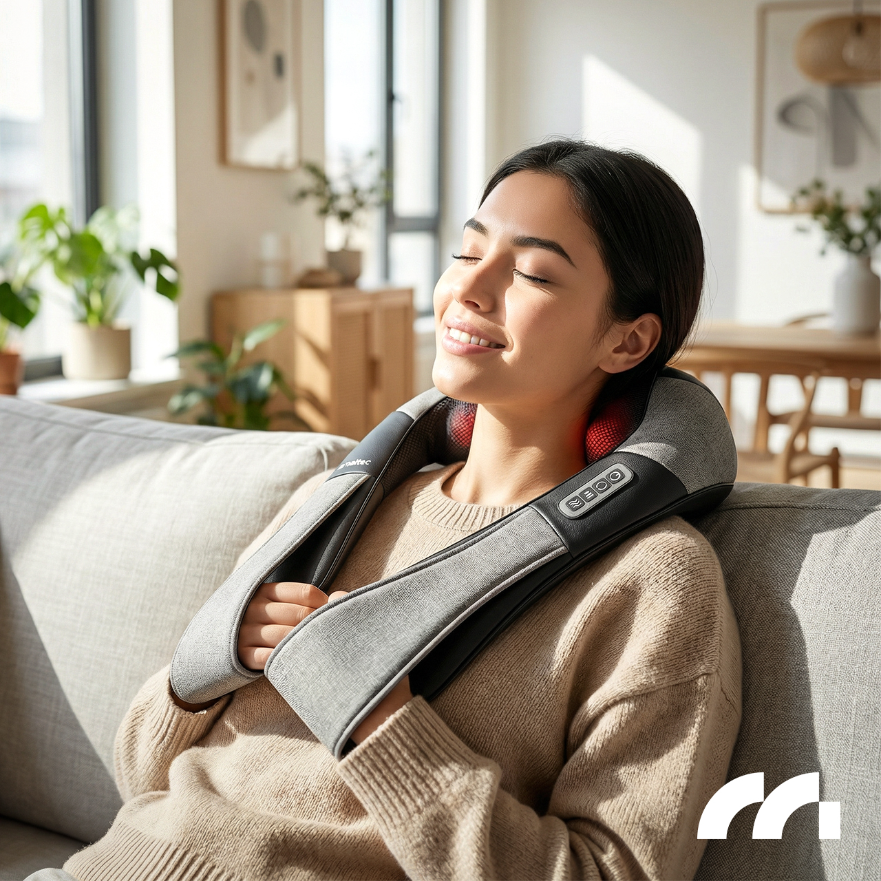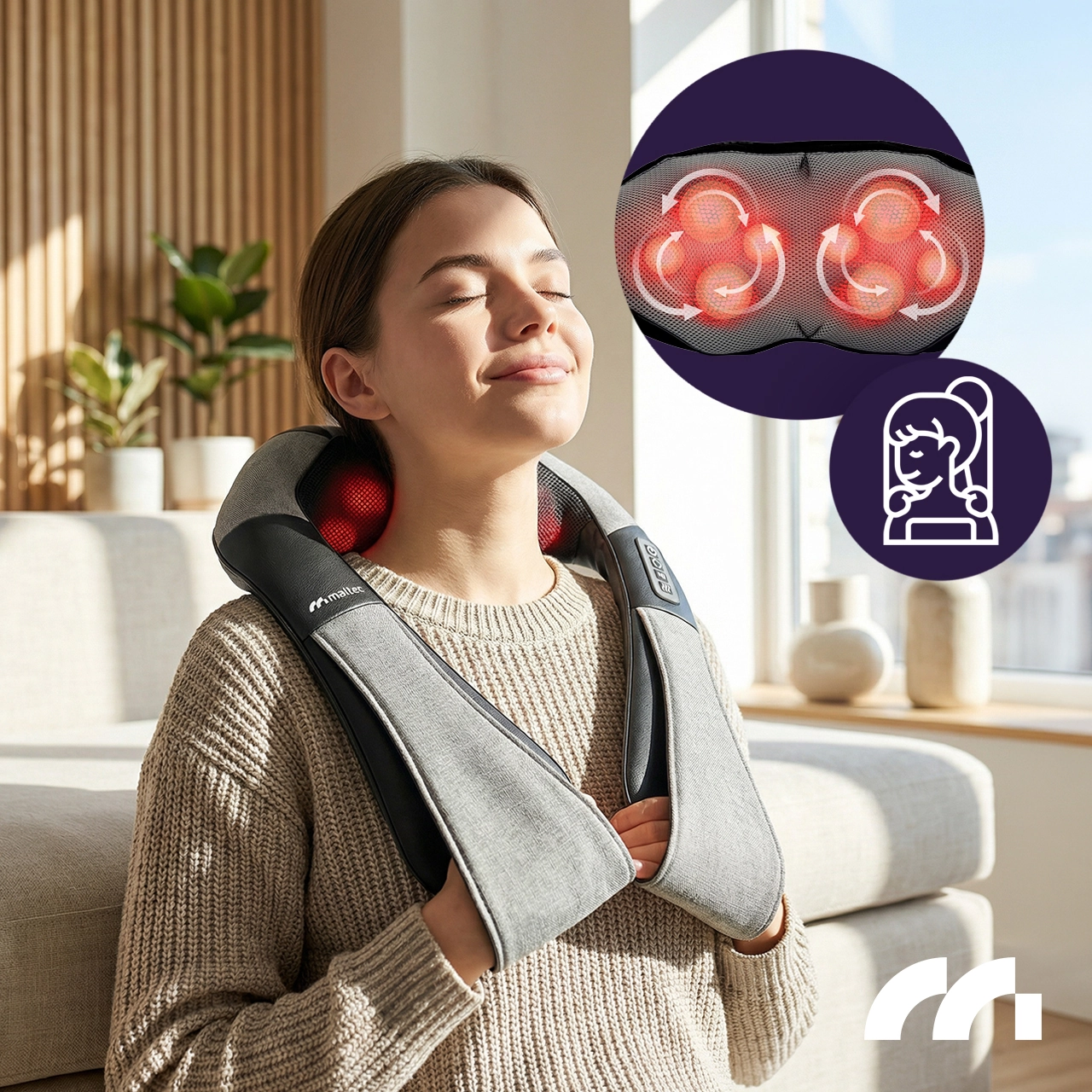 MAX-Comfy 2000 využívá hlubokou hnětací masáž, která cílí přesně na místa, kde se napětí vyskytuje nejčastěji – krk, ramena a horní část zad.
