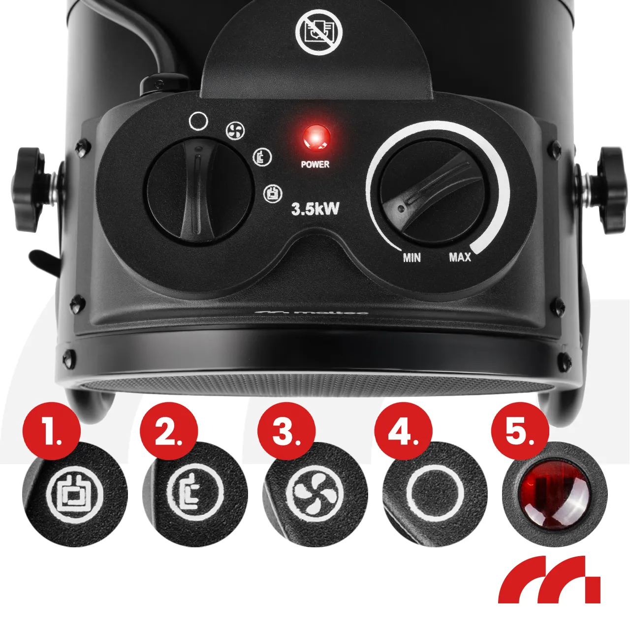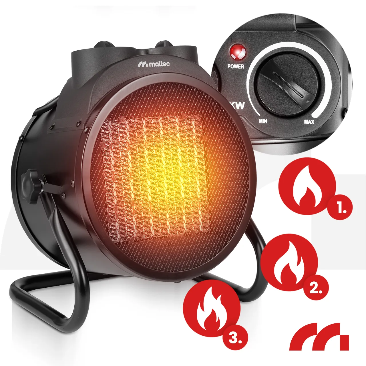 ◾ VYSOKÝ VÝKON 3,5 kW ◾ REGULACE VENTILÁTORU ◾ TERMOSTAT ◾ RYCHLÉ OHŘEVY ◾ NÍZKÁ SPOTŘEBA ENERGIE ◾