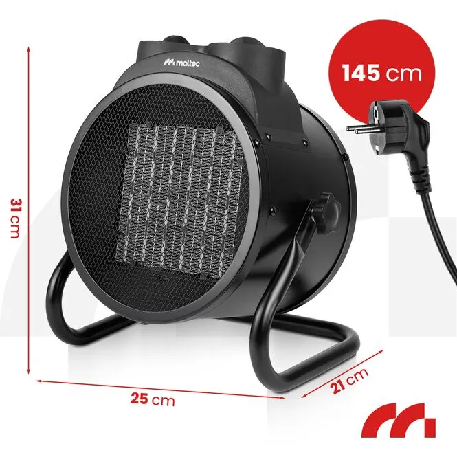 Elektrické ohřívače tohoto typu jsou vybaveny řadou komfortních funkcí, které výrazně zvyšují bezpečnost uživatelů. Jsou vybaveny systémem, který chrání motor před přehřátím. Navíc jejich kompaktní konstrukce a rukojeť umístěná na horní straně robustního krytu usnadňují jejich přenášení. Studený vzduch je nasáván do zařízení ventilátorem a směřován k výstupu ohřívače, kde je ohříván vysoce kvalitními topnými články. Teplý vzduch je vyfukován přední stranou.