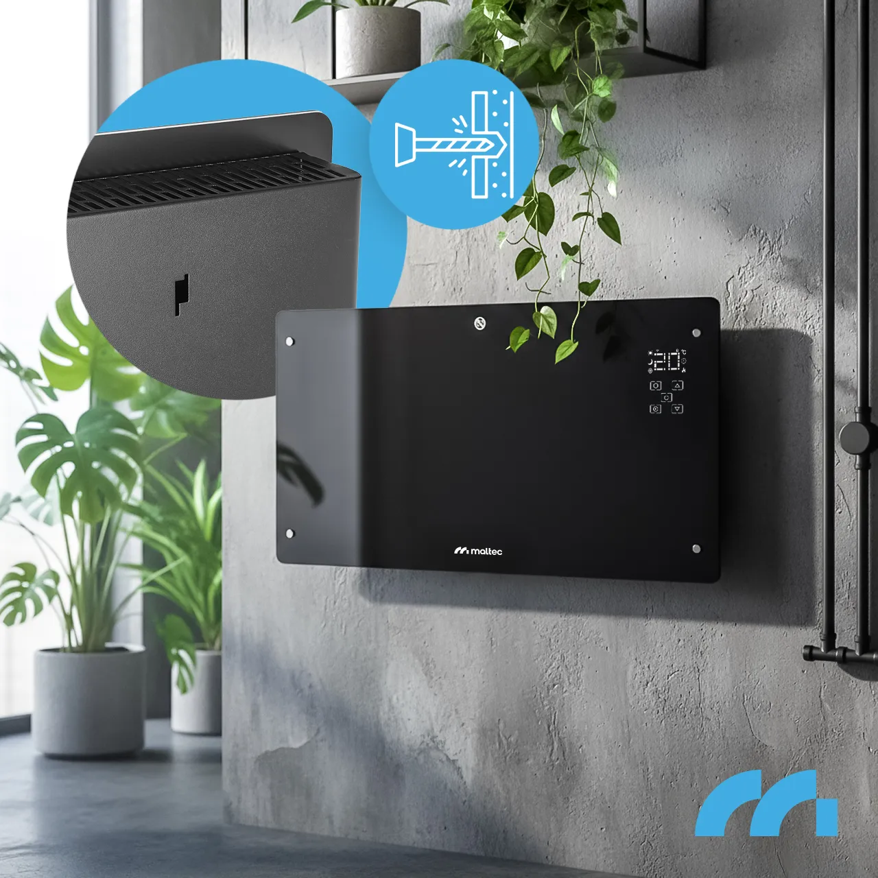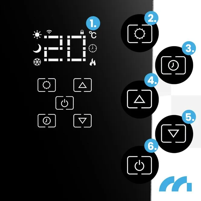 Stačí jej nastavit na LED panelu pomocí dotykového tlačítka, v aplikaci nebo na dálkovém ovladači. Od této chvíle bude zařízení udržovat danou teplotu v místnosti.