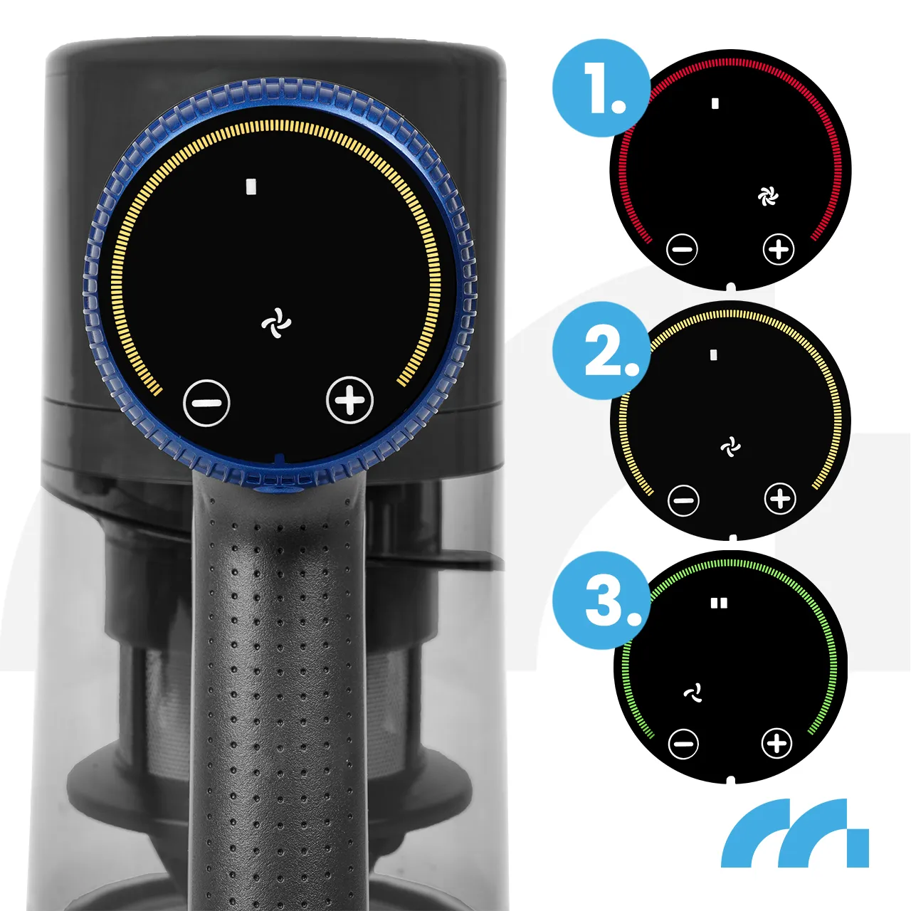 • Režim 3 – TURBO: maximální sací výkon – až 30 kPa , ideální pro odolné nečistoty, zvířecí chlupy a písek.