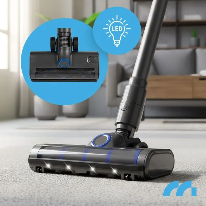 • Lepší viditelnost - LED světlo přesně osvětluje podlahu, což umožňuje čištění i v těžko dostupných a tmavých místech (např. pod postelí nebo pohovkou).
