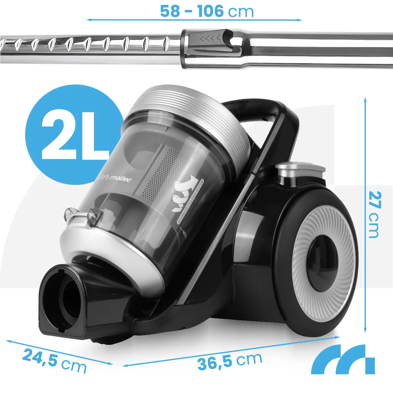 Vysavač využívá cyklony, které účinně oddělují prachové částice od proudu vzduchu. Tím je zajištěno, že unikající vzduch je čistší než nasávaný vzduch. Přídavné filtry zvyšují účinnost čištění zachycováním nečistot.