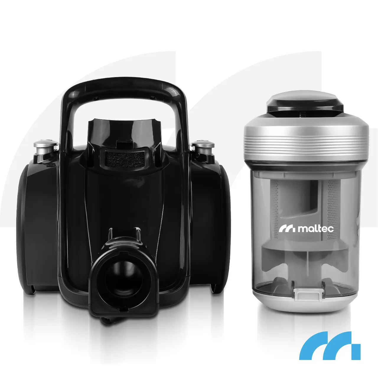 Místo jednorázového sáčku má vysavač speciální komoru, do které nasává vzduch a poté jej uvádí do vířivého pohybu – to vše proto, aby důkladně oddělil nečistoty, které se v nádobě hromadí.