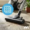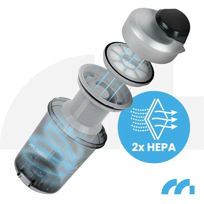 Vysavač využívá vícestupňový filtrační systém, který účinně zachycuje všechny nečistoty. Tím je zajištěno, že veškeré bakterie a prach zůstanou v prázdné nádobě a nebudou moci unikat.