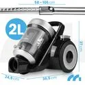 - Díky dlouhému kabelu a teleskopické trubce má vysavač velký provozní dosah , což vám umožňuje vysávat velké plochy bez nutnosti opětovného připojování kabelu.
