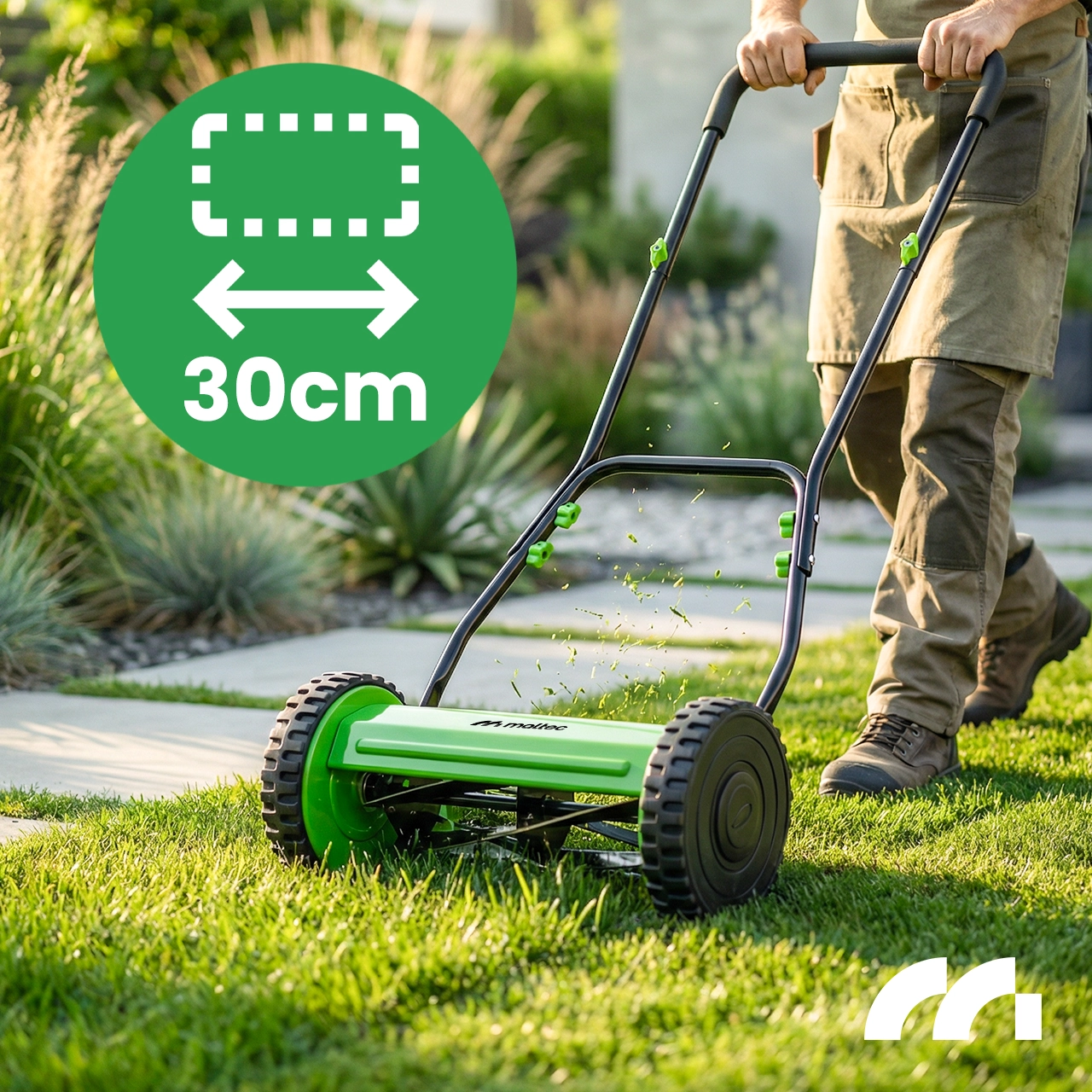 MasterBlade300 je vynikající volbou pro ty, kteří chtějí udržovat svůj trávník bez hluku, výfukových plynů a zbytečných provozních nákladů . Žádný motor znamená žádné doplňování paliva, žádné nabíjení, žádné kabely ani žádnou další údržbu. Získáte stroj, který je vždy připraven k práci, ideální pro práce, kde nepotřebujete velkou, těžkou elektrickou nebo benzínovou sekačku.