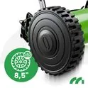 Kola o průměru 217 mm navíc usnadňují plynulé manévrování, díky čemuž je sečení méně únavné a pohodlnější i při častém používání.
