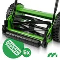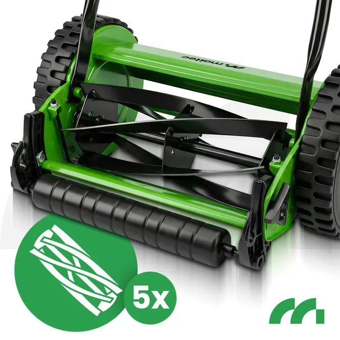 Pět nožů z vysoce uhlíkové oceli 65Mn a bubnový žací systém zajišťují, že sekačka seká trávu rovnoměrně bez trhání . Váš trávník tak vypadá čistě, svěže a upraveně a výsledky dobře udržovaného trávníku jsou okamžitě viditelné.