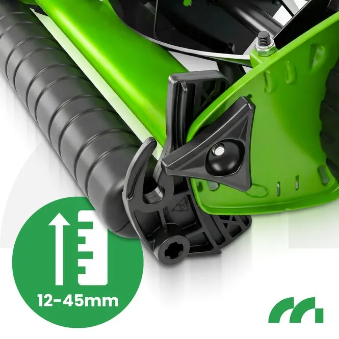 Díky nastavení výšky sečení v rozsahu 12–45 mm si můžete snadno přizpůsobit výkon sečení aktuálnímu stavu trávy a vlastním preferencím.