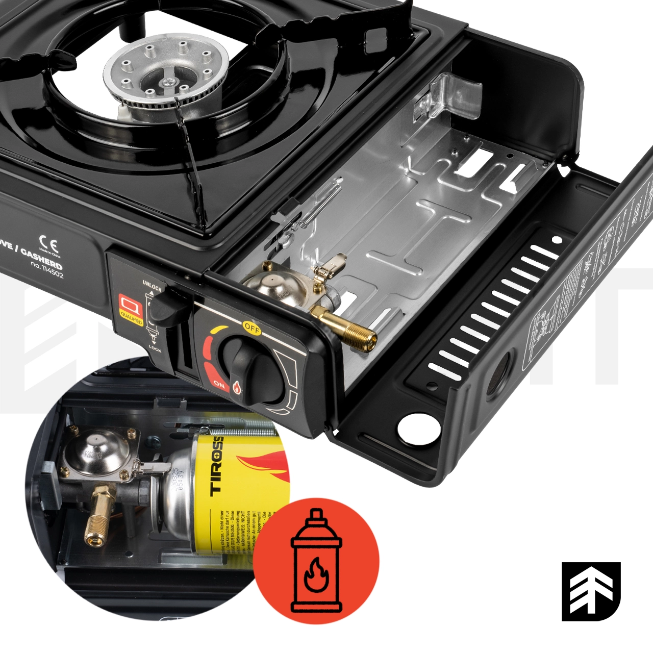◾ VÝKONNÉ VAŘENÍ VENKOVĚ ◾ PIEZO – RYCHLÝ START ◾ PATRONA NEBO VÁLEČKA ◾ REGULACE PLAMENE ◾ OCHRANNÝ ŠTÍT PROTI VĚTRU