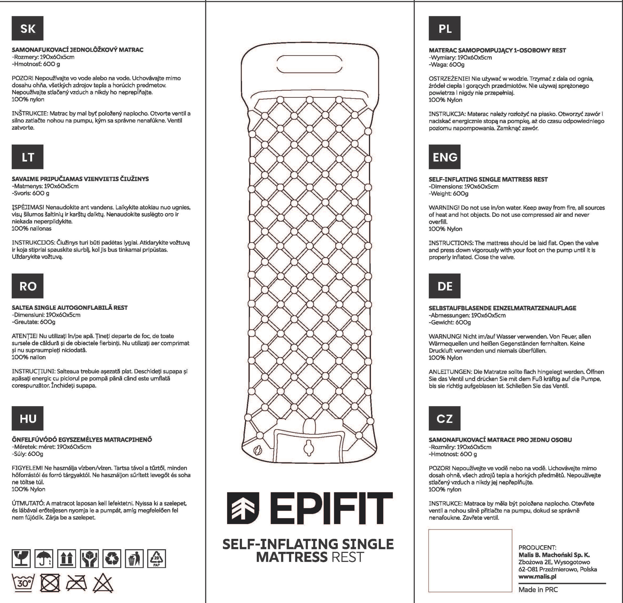 Matrace REST je solidním řešením na mnoho sezón. Vyrobeno z odolného nylonu a 40D TPU, je odolné vůči nečistotám a poškození. Vestavěná nožní pumpa a polštář zvyšují komfort používání.